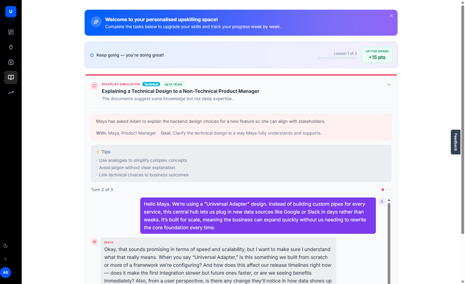 AI-powered learning platform that bridges daily work output and professional development — detecting skill gaps automatically, delivering learning exactly when it matters.