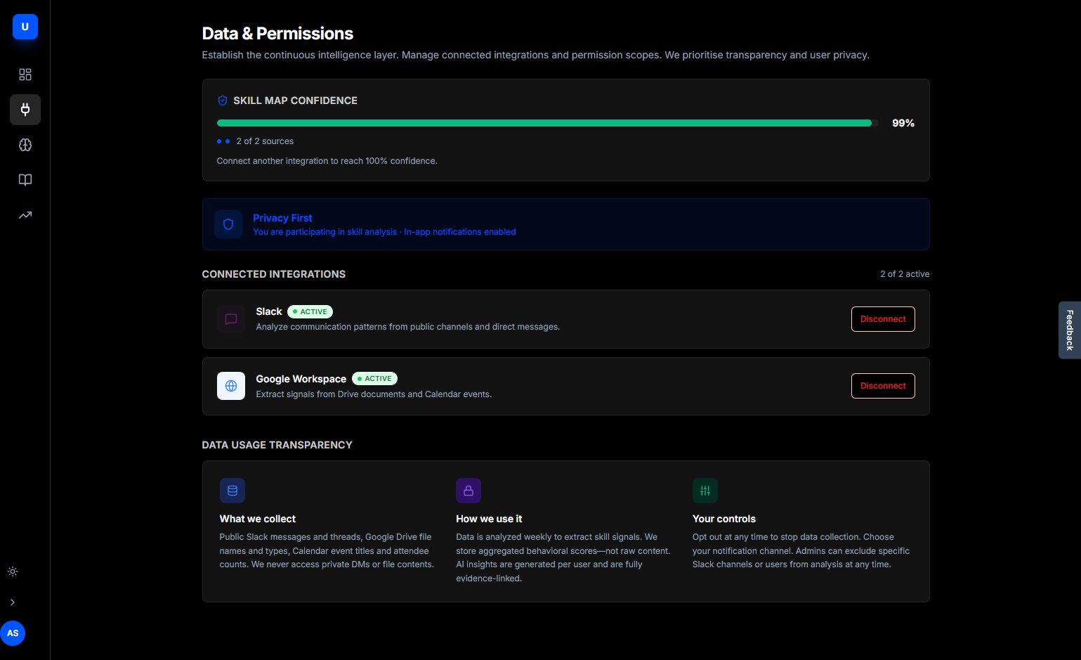 Automated connectors for Slack and Google Workspace eliminate manual data entry, making skill tracking invisible to the end user.